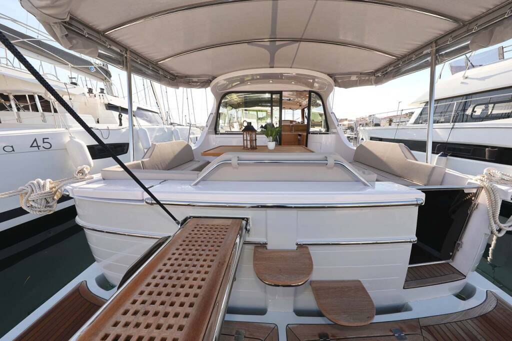 Motoryacht Adriana 44 Adriana, Baujahr 2022, liegt im Marina Kornati, Biograd, Zadar & Umgebung, Kroatien vor Anker. Es verfügt über 3 Kabinen und bietet Platz für 6 Personen mit 2 Toiletten.