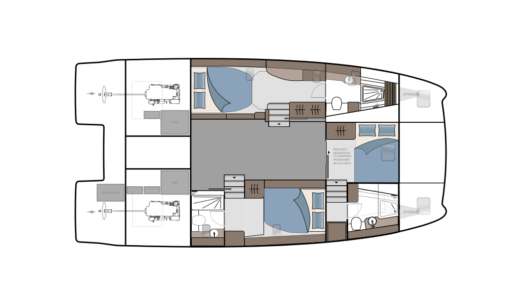 Power catamaran Aquila 42 Seaduction, Baujahr 2025, liegt im Lavrion - Olympic Marine, Athens area/Saronic/Peloponese, Griechenland vor Anker. Es verfügt über 3 Kabinen und bietet Platz für 6 Personen mit 2 Toiletten.