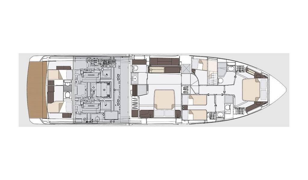 Motoryacht Azimut 68 Pangea, Baujahr 2024, liegt im Marina Lav - Podstrana, Split & Umgebung, Kroatien vor Anker. Es verfügt über 4 + 1 Kabinen und bietet Platz für 8 Personen mit 5 Toiletten.