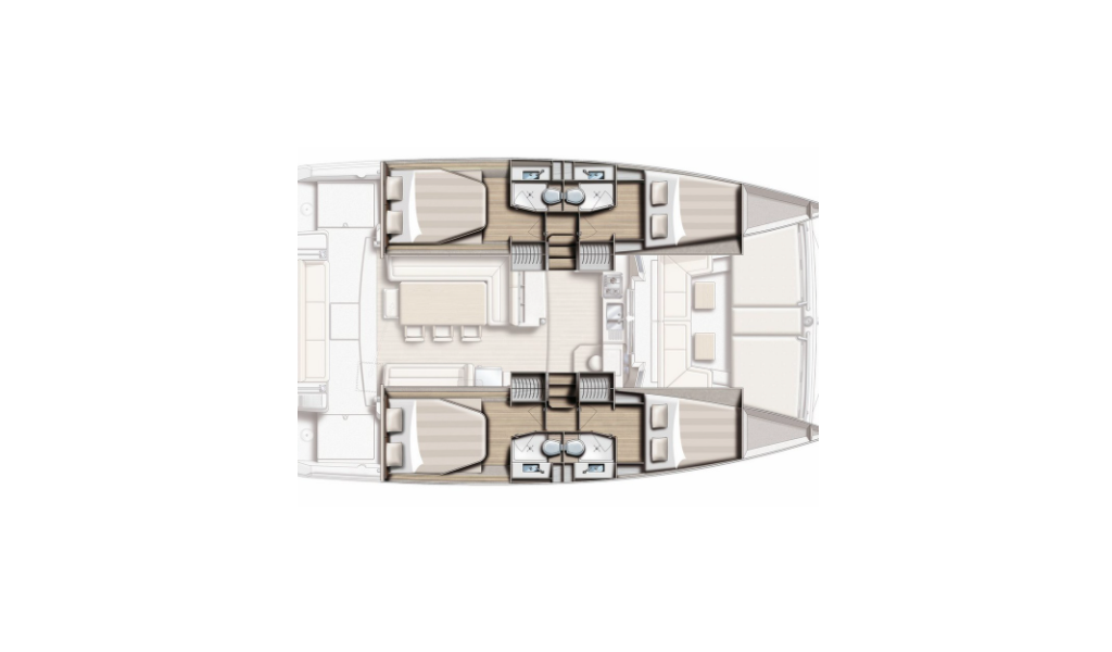 Katamaran Bali 4.1 Orlandina, Baujahr 2020, liegt im Capo D'orlando Marina, Sizilien, Italien vor Anker. Es verfügt über 4 + 1 Kabinen und bietet Platz für 8 + 1 + 1 Personen mit 4 Toiletten.