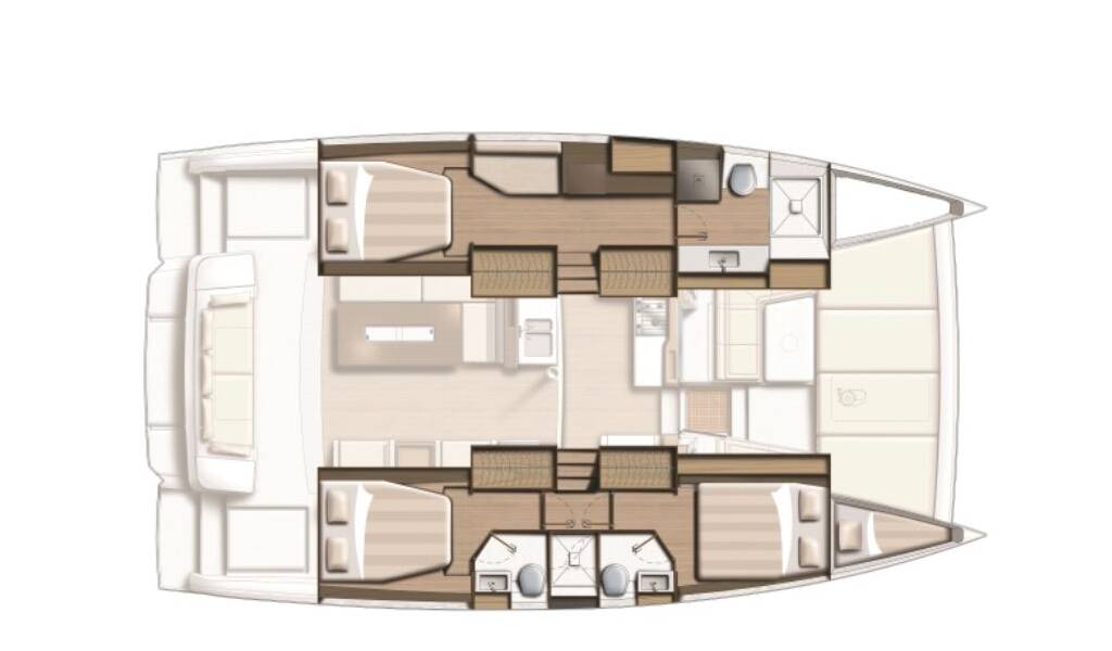 Katamaran Bali 4.2 OW MOONGLADE, Baujahr 2022, liegt im St. Thomas, Compass Point Marina, US- Virgin Islands, US Virgin Islands vor Anker. Es verfügt über 3 + 1 Kabinen und bietet Platz für 6 + 1 Personen mit 3 Toiletten.