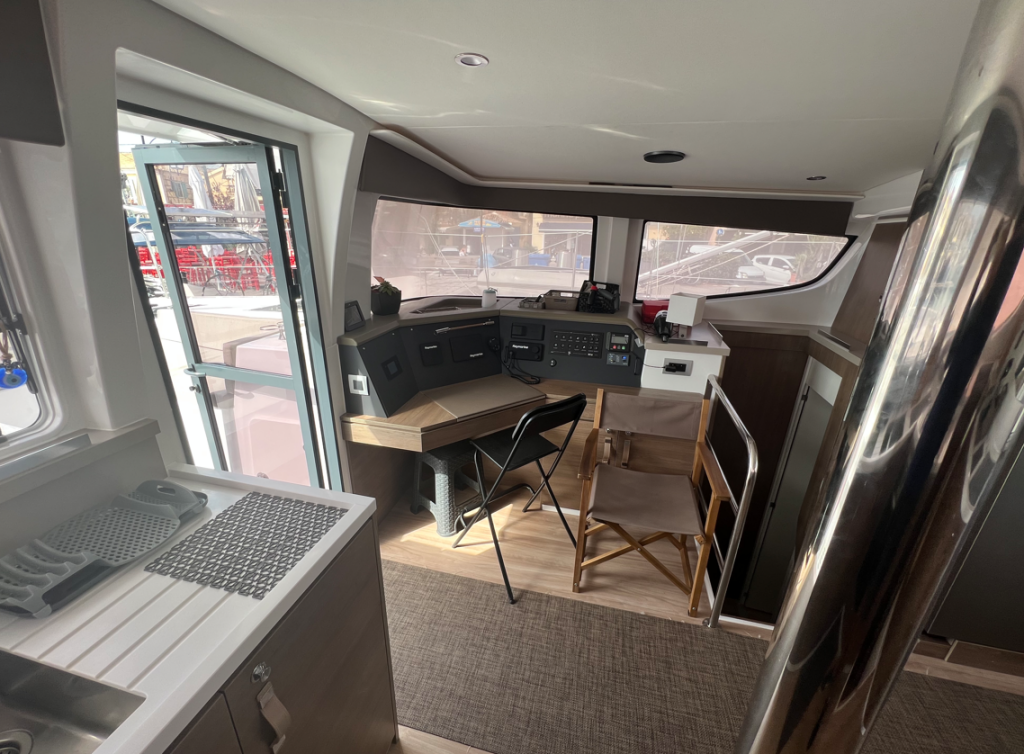Katamaran Bali 4.4 Bali 4.4, Baujahr 2023, liegt im Lefkas main port, Ionisches Meer, Griechenland vor Anker. Es verfügt über 4 + 1 Kabinen und bietet Platz für 8 + 1 + 1 Personen mit 4 + 1 Toiletten.