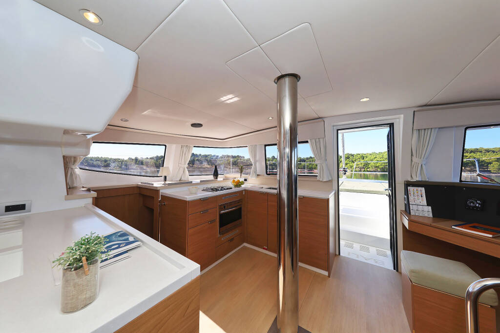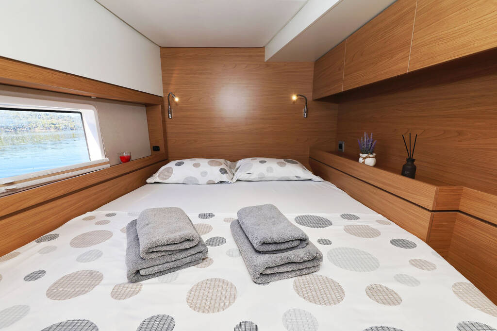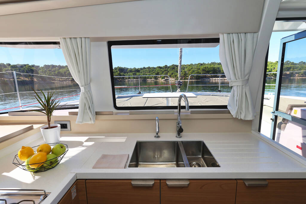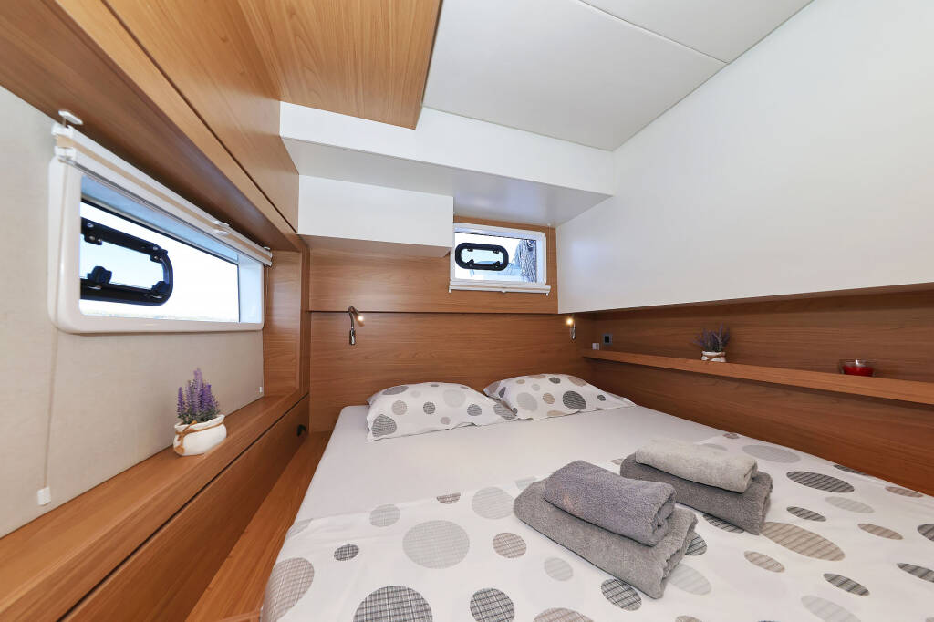 Katamaran Bali 4.4 Mela, Baujahr 2024, liegt im Marina Mandalina, Sibenik, Sibenik & Umgebung, Kroatien vor Anker. Es verfügt über 4 + 1 Kabinen und bietet Platz für 8 + 1 Personen mit 4 + 1 Toiletten.