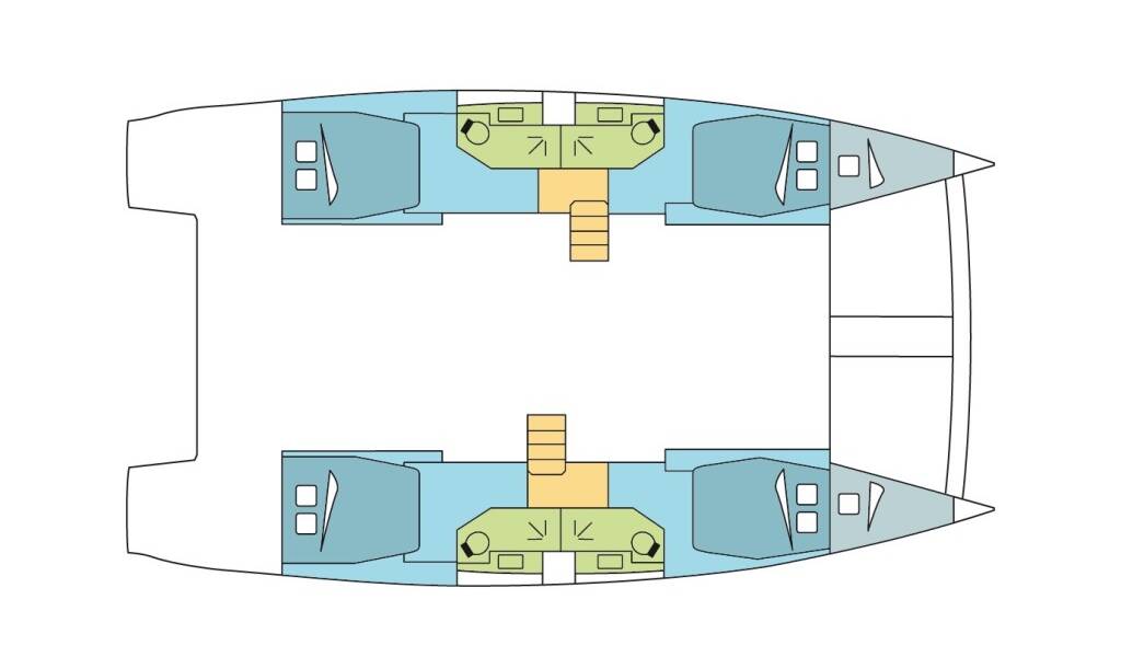 + provisioning, Crew on board must have their own toilets/ showers. If either a skipper or a hostess/cook is on board, 1 double cabin will be required for him/her. If both a skipper and a hostess/cook are on board, 1 double cabin and 1 forepeak cabin will be required for them. Exceptions exists for specific layouts, Sales Agents will provide more details about the different boat models // In Spain, law requires clients to pay skipper directly with a contract established between both parties - Zahlbar vor Ort