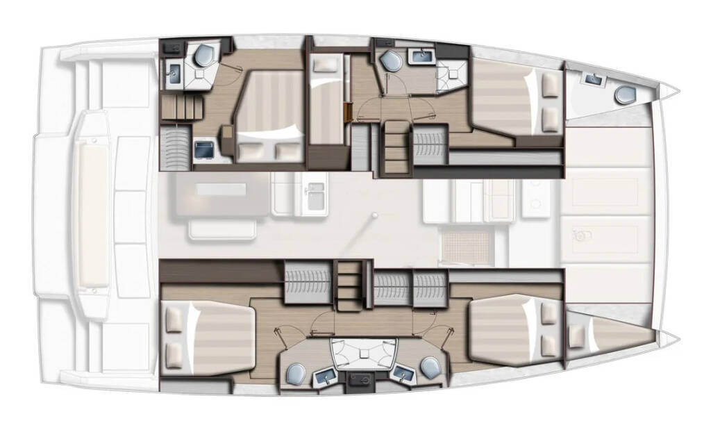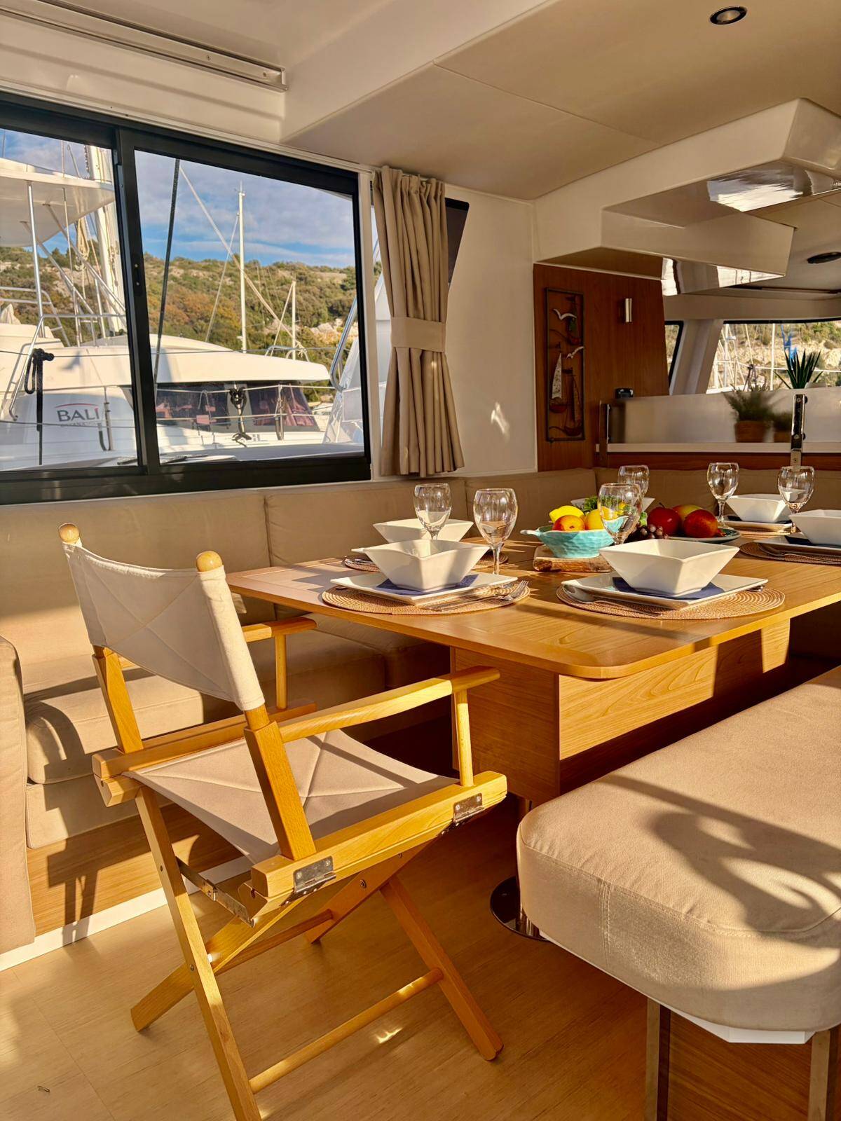Katamaran Bali 4.6 Friendship, Baujahr 2025, liegt im Marina Kremik, Primosten, Sibenik & Umgebung, Kroatien vor Anker. Es verfügt über 5 + 2 Kabinen und bietet Platz für 10 + 2 Personen mit 4 Toiletten.