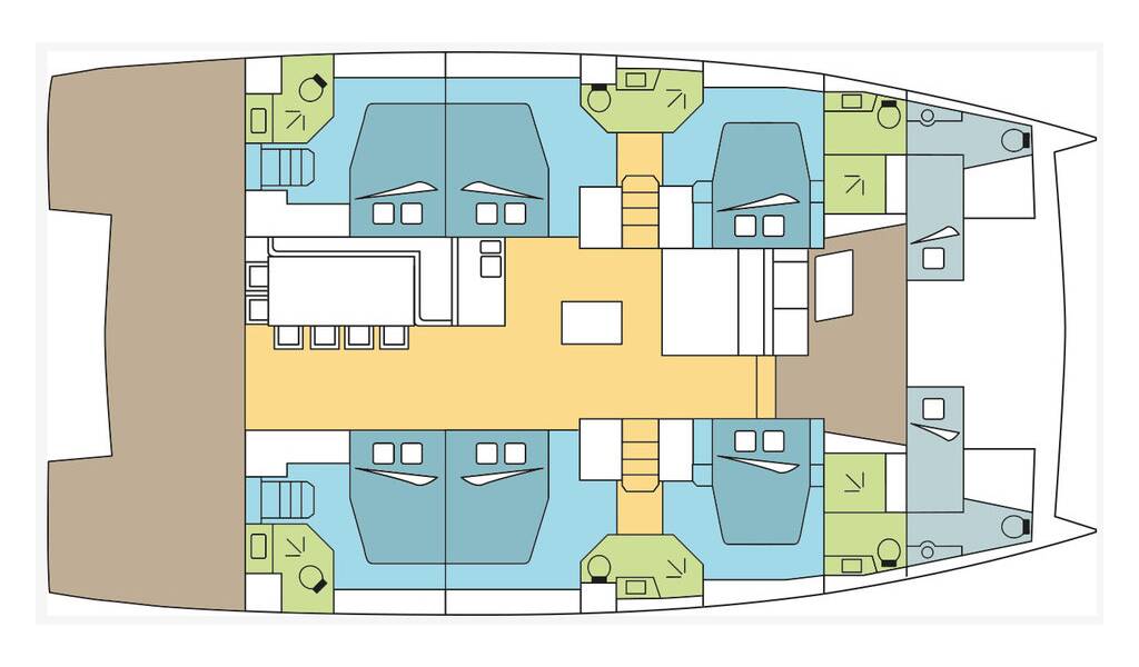 + provisioning, Crew on board must have their own toilets/ showers. If either a skipper or a hostess/cook is on board, 1 double cabin will be required for him/her. If both a skipper and a hostess/cook are on board, 1 double cabin and 1 forepeak cabin will be required for them. Exceptions exists for specific layouts, Sales Agents will provide more details about the different boat models // In Spain, law requires clients to pay hostess directly with a contract established between both parties - Zahlbar vor Ort