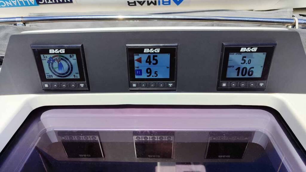 Segelyacht Bavaria C46 Estinella, Baujahr 2024, liegt im Trogir, Marina Trogir (ex.SCT), Split & Umgebung, Kroatien vor Anker. Es verfügt über 4 Kabinen und bietet Platz für 8 + 1 Personen mit 4 Toiletten.