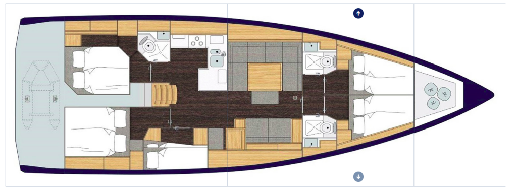 Dinghy garage BBQ in cockpit + sinkBow thrusterAirconditioningGeneratorInverter