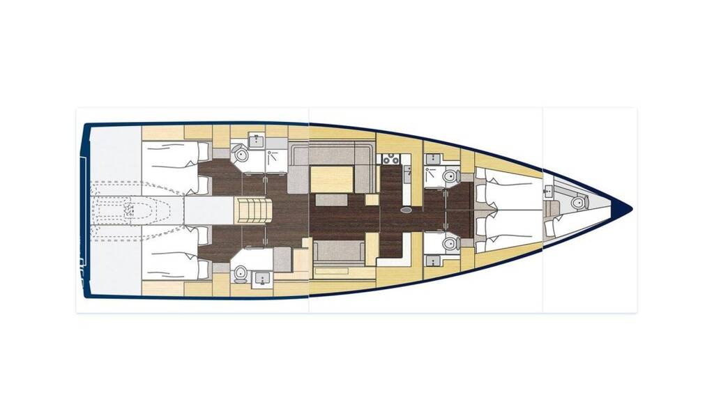 Segelyacht Bavaria C57 Promitheas, Baujahr 2021, liegt im Athens, Alimos marina, Athens area/Saronic/Peloponese, Griechenland vor Anker. Es verfügt über 4 + 1 Kabinen und bietet Platz für 8 + 1 + 1 Personen mit 4 + 1 Toiletten.