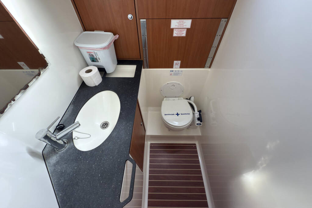 Segelyacht Bavaria Cruiser 45 Eva, Baujahr 2012, liegt im Palma de Mallorca, Marina Naviera Balear, Balearische Inseln, Spanien vor Anker. Es verfügt über 4 Kabinen und bietet Platz für 8 Personen mit 3 Toiletten.