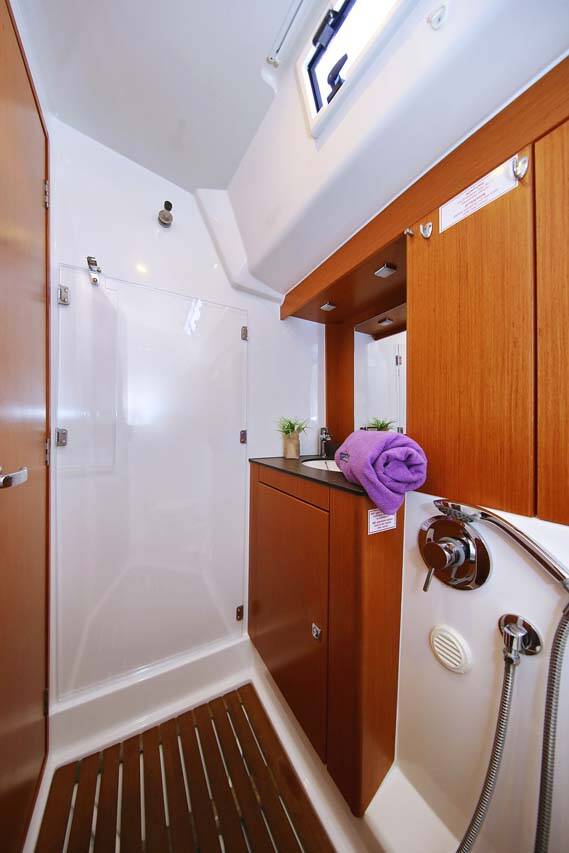Segelyacht Bavaria Cruiser 56 El Karinjo, Baujahr 2016, liegt im Trogir, Marina Trogir (ex.SCT), Split & Umgebung, Kroatien vor Anker. Es verfügt über 5 + 1 Kabinen und bietet Platz für 10 + 1 + 1 Personen mit 3 + 1 Toiletten.