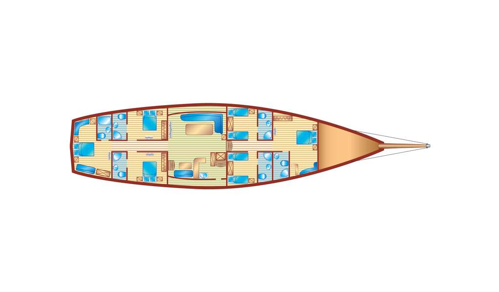 Gulet & Motorsailer Caner 4 Caner 4, Baujahr 2008, liegt im Bodrum, Milta Marina, Aegean, Türkei vor Anker. Es verfügt über 6 Kabinen und bietet Platz für 12 Personen mit 6 Toiletten.