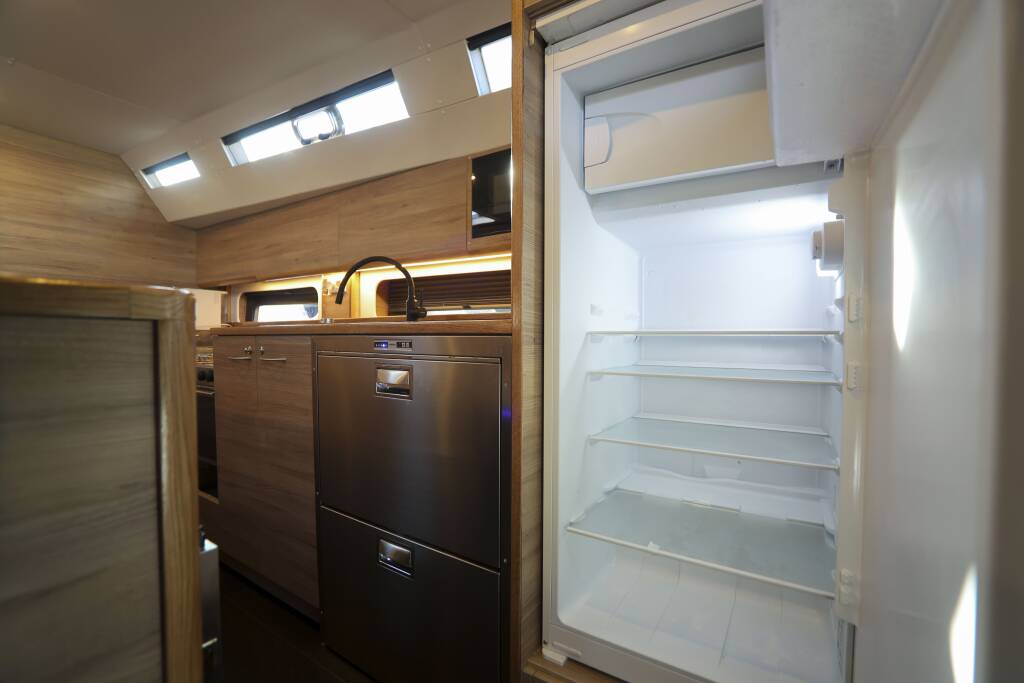 Segelyacht D&D Kufner 50 Luna Blu, Baujahr 2025, liegt im Salerno, Marina d'Arechi, Campania, Italien vor Anker. Es verfügt über 4 Kabinen und bietet Platz für 7 + 2 Personen mit 4 Toiletten.