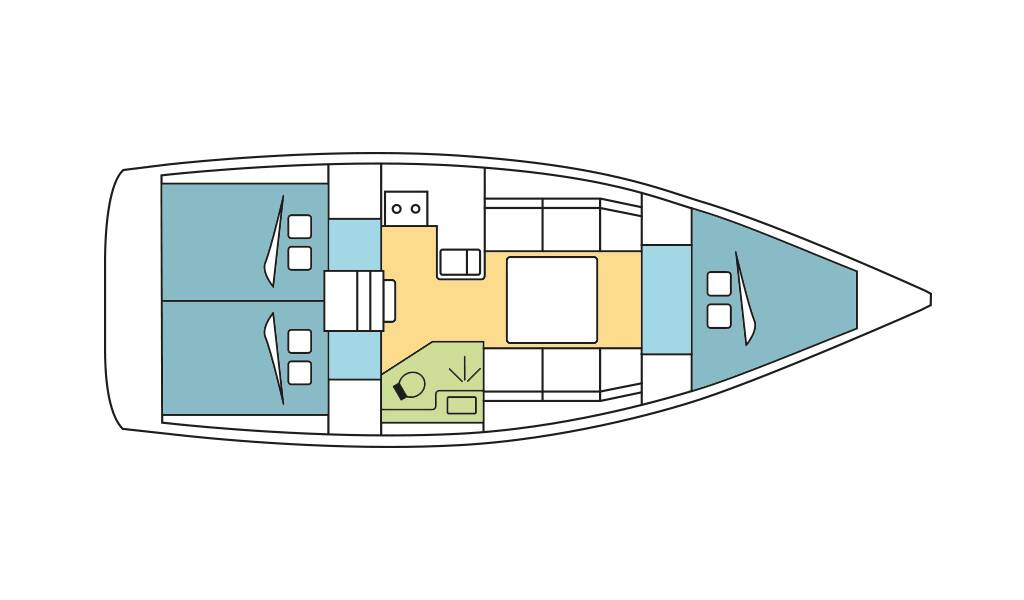 + provisioning, Crew on board must have their own toilets/ showers. If either a skipper or a hostess/cook is on board, 1 double cabin will be required for him/her. If both a skipper and a hostess/cook are on board, 1 double cabin and 1 forepeak cabin will be required for them. Exceptions exists for specific layouts, Sales Agents will provide more details about the different boat models // In Spain, law requires clients to pay skipper directly with a contract established between both parties - Zahlbar vor Ort