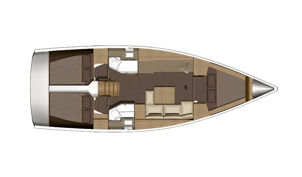 Segelyacht Dufour 382 GL Notus, Baujahr 2016, liegt im Sicily, Portorosa, Sizilien, Italien vor Anker. Es verfügt über 3 Kabinen und bietet Platz für 6 + 2 Personen mit 2 Toiletten.