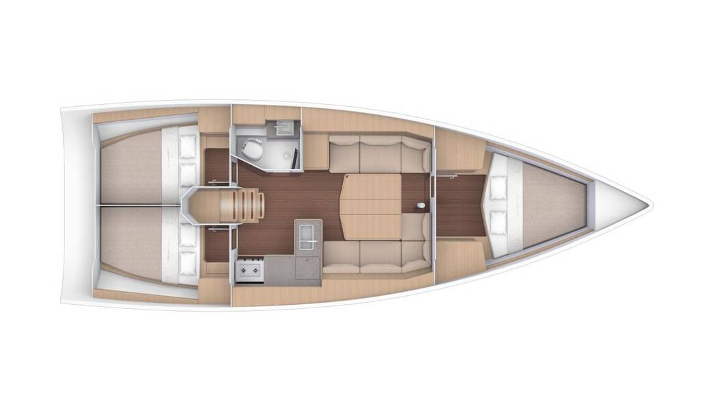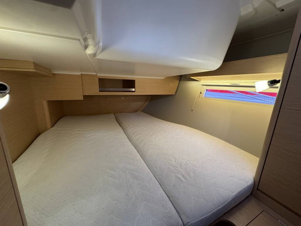 Segelyacht Dufour 390 Stella Marie IV, Baujahr 2023, liegt im French Atlantic, La Rochelle, Poitou-Charentes, Frankreich vor Anker. Es verfügt über 3 Kabinen und bietet Platz für 6 + 2 Personen mit 1 Toiletten.