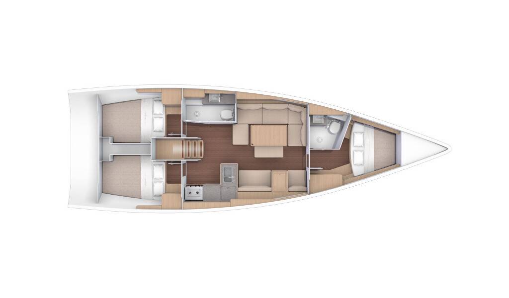 Segelyacht Dufour 412 GL Hedone, Baujahr 2020, liegt im Sicily, Portorosa, Sizilien, Italien vor Anker. Es verfügt über 3 Kabinen und bietet Platz für 6 + 2 Personen mit 2 Toiletten.