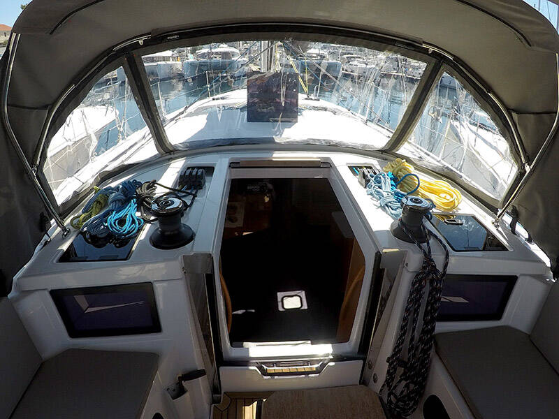 Segelyacht Dufour 44 Dama, Baujahr 2024, liegt im Marina Mandalina, Sibenik, Sibenik & Umgebung, Kroatien vor Anker. Es verfügt über 4 Kabinen und bietet Platz für 8 + 2 Personen mit 4 Toiletten.