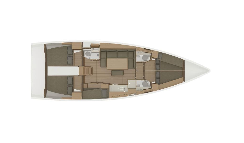Segelyacht Dufour 460 GL Ibis, Baujahr 2019, liegt im ACI Marina Trogir, Split & Umgebung, Kroatien vor Anker. Es verfügt über 5 Kabinen und bietet Platz für 10 + 2 Personen mit 3 Toiletten.