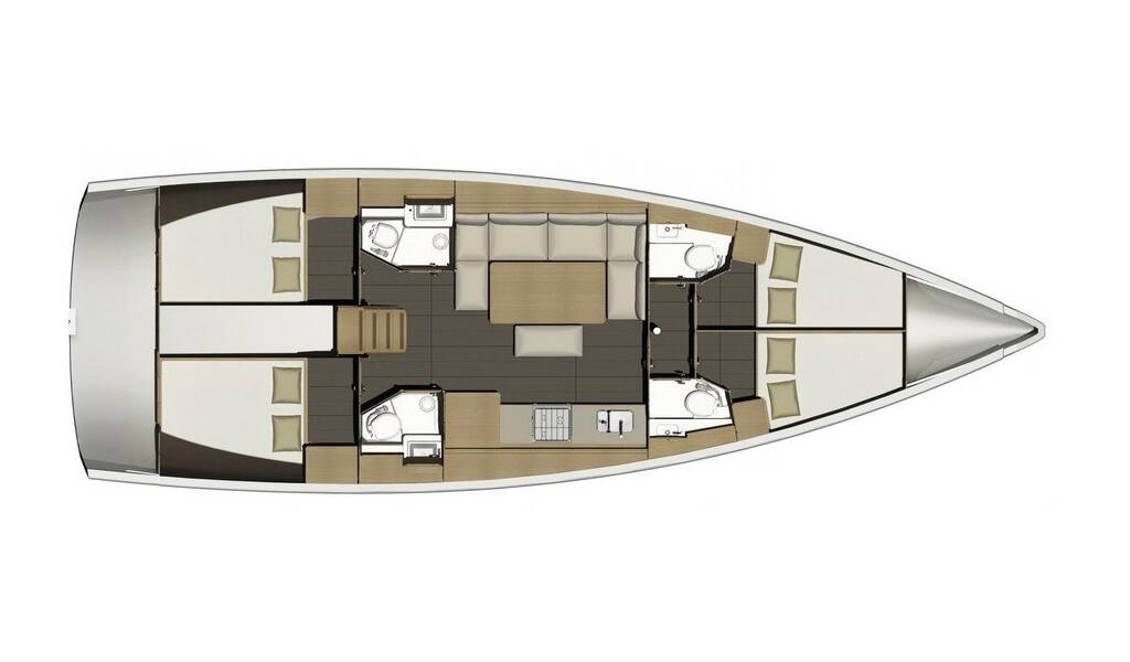 Segelyacht Dufour 460 GL ZANAFI, Baujahr 2018, liegt im Trogir, Yachtclub Seget (Marina Baotić), Split & Umgebung, Kroatien vor Anker. Es verfügt über 4 Kabinen und bietet Platz für 8 + 2 Personen mit 4 Toiletten.