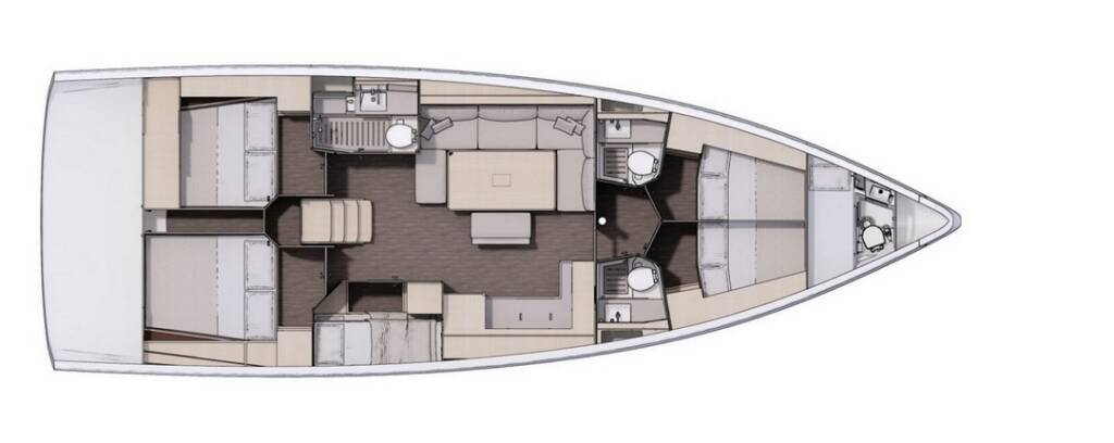 Segelyacht Dufour 470 Potter, Baujahr 2021, liegt im Sardinia, Punta Nuraghe, Sardinien, Italien vor Anker. Es verfügt über 5 + 1 Kabinen und bietet Platz für 10 + 1 Personen mit 3 + 1 Toiletten.