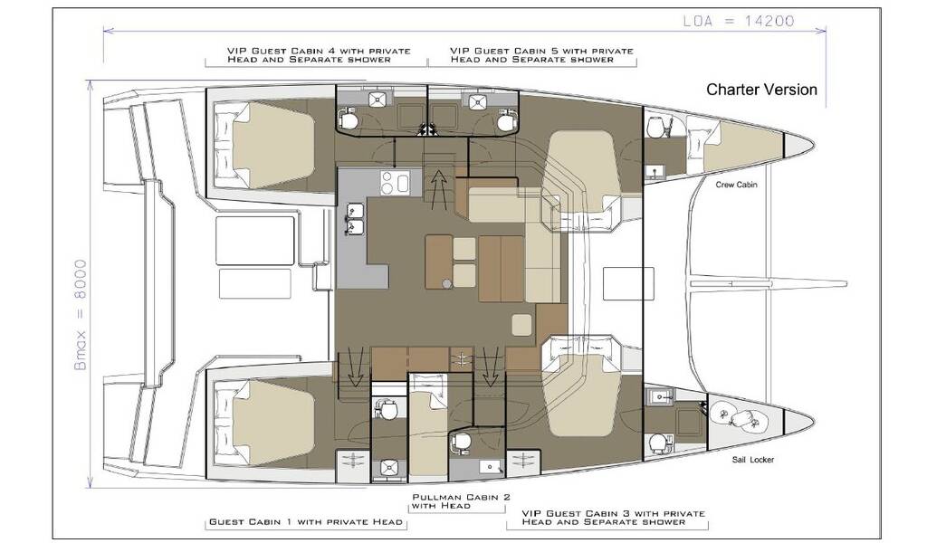 Katamaran Dufour 48 Catamaran LoveMarine, Baujahr 2025, liegt im Marina Pirovac, Sibenik & Umgebung, Kroatien vor Anker. Es verfügt über 5 + 1 Kabinen und bietet Platz für 10 + 1 + 1 Personen mit 5 + 1 Toiletten.