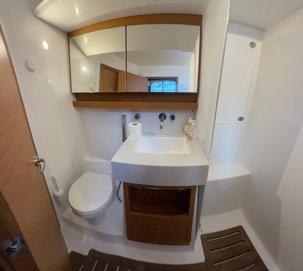 Segelyacht Dufour 530 Sofia, Baujahr 2022, liegt im Kos, Kos Marina, Dodekanes, Griechenland vor Anker. Es verfügt über 4 + 1 Kabinen und bietet Platz für 8 + 2 + 1 Personen mit 4 + 1 Toiletten.