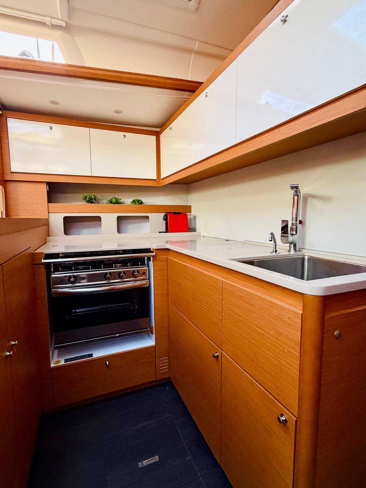 Segelyacht Dufour 530 Suzie Q, Baujahr 2025, liegt im Marina Kremik, Primosten, Sibenik & Umgebung, Kroatien vor Anker. Es verfügt über 5 + 1 Kabinen und bietet Platz für 10 + 2 + 1 Personen mit 3 + 1 Toiletten.