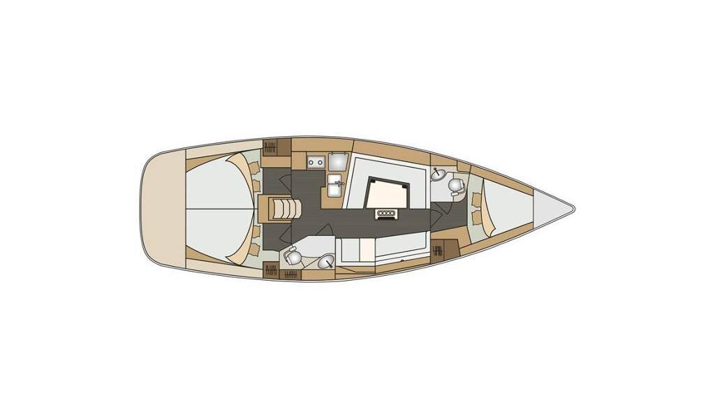Segelyacht Elan Impression 40 Danu, Baujahr 2019, liegt im Marina Kastela, Split & Umgebung, Kroatien vor Anker. Es verfügt über 3 Kabinen und bietet Platz für 6 + 2 Personen mit 2 Toiletten.