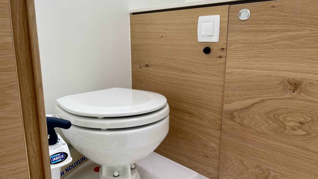 Segelyacht Elan Impression 45 Aurora, Baujahr 2024, liegt im Marina Pirovac, Sibenik & Umgebung, Kroatien vor Anker. Es verfügt über 4 Kabinen und bietet Platz für 8 + 2 Personen mit 2 Toiletten.
