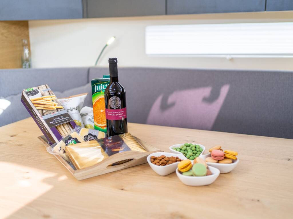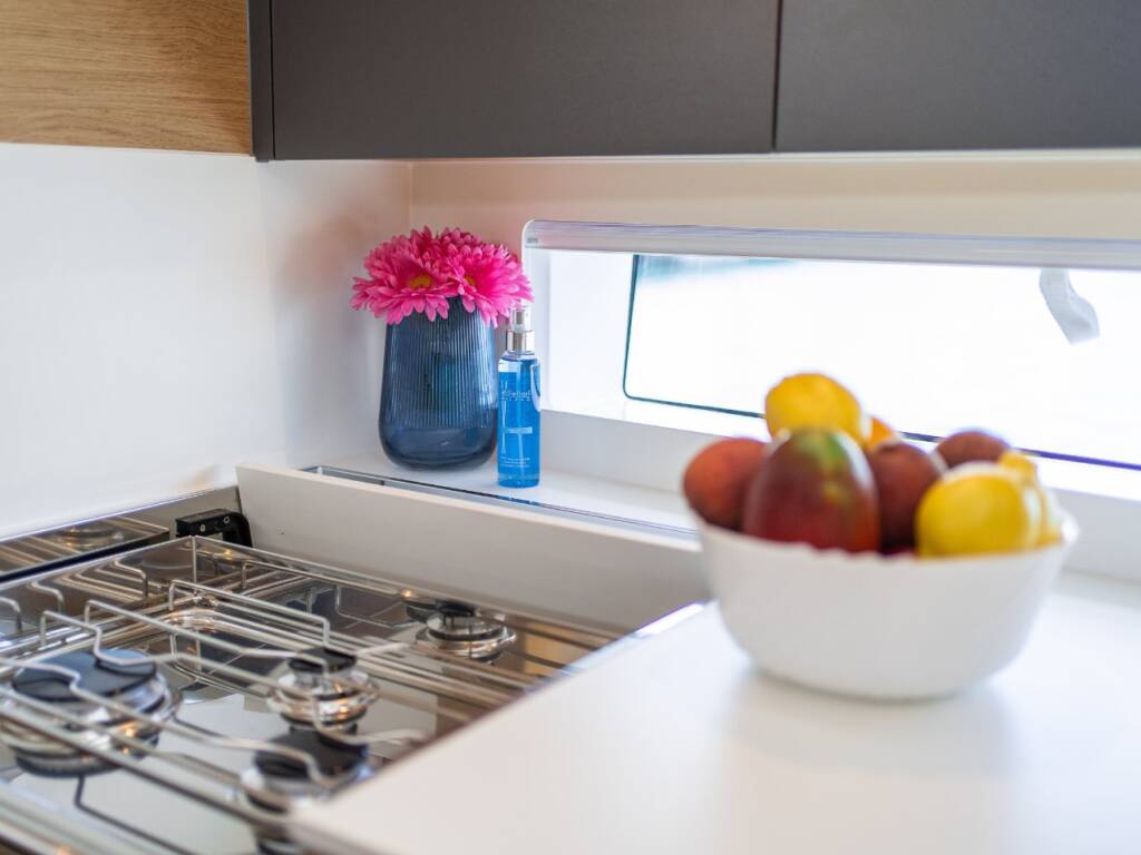 Grill, Kühlschrank im Cockpit, große Badeplattform, Teakholz-Cockpit, Ambientebeleuchtung, Salon mit Klimaanlage, Bugstrahlruder