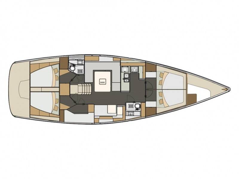 Segelyacht Elan Impression 50 Abena, Baujahr 2019, liegt im Marina Kornati, Biograd, Zadar & Umgebung, Kroatien vor Anker. Es verfügt über 5 Kabinen und bietet Platz für 10 + 2 Personen mit 2 Toiletten.