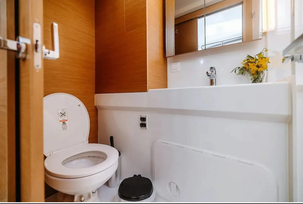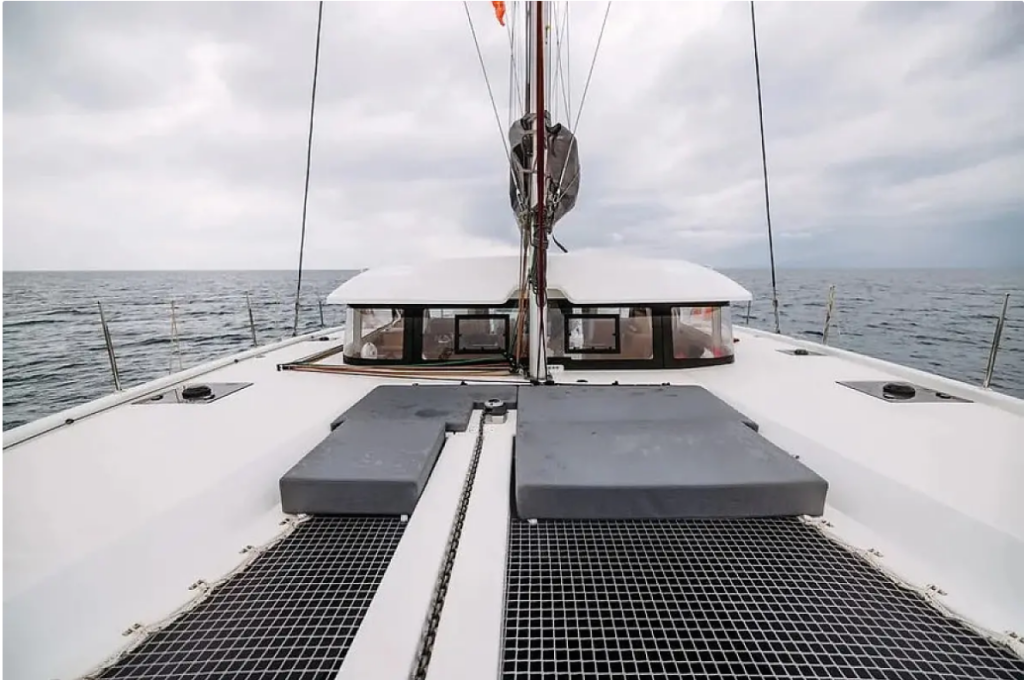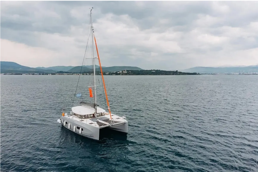 Katamaran Excess 11 Lydia, Baujahr 2025, liegt im Lefkas, Nikiana Marina, Ionisches Meer, Griechenland vor Anker. Es verfügt über 4 Kabinen und bietet Platz für 8 Personen mit 2 Toiletten.