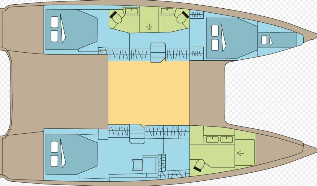 + provisioning, Crew on board must have their own toilets/ showers. If either a skipper or a hostess/cook is on board, 1 double cabin will be required for him/her. If both a skipper and a hostess/cook are on board, 1 double cabin and 1 forepeak cabin will be required for them. Exceptions exists for specific layouts, Sales Agents will provide more details about the different boat models. // In Spain, law requires clients to pay skipper directly with a contract established between both parties - Zahlbar vor Ort