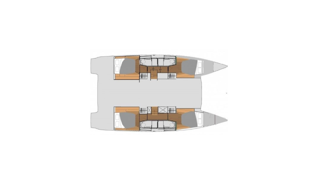 Katamaran Fountaine Pajot Elba 45 Fiyolo, Baujahr 2022, liegt im St. Thomas, Frenchtown Marina, US- Virgin Islands, US Virgin Islands vor Anker. Es verfügt über 4 Kabinen und bietet Platz für 8 Personen mit 4 Toiletten.