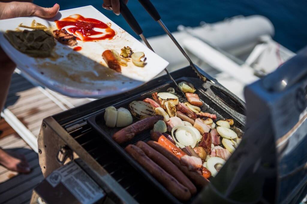 Vollpension (maximal 6 Personen – Frühstück, Mittag- und Abendessen), inklusive speziellem Fisch- und mediterranem Menü, Einkauf, Abwasch, Unterstützung des Skippers beim An- und Ablegen des Katamarans sowie Planung und Bereitstellung von Speisen und Getränken für den Charterbeginn. Maximal 8 Gäste (jeder weitere Gast kostet 100 EUR/Woche). Der Koch ist ein festangestellter Profi mit Saisonvertrag. Er ist ein externer Dienstleister (die Charterfirma vermittelt lediglich die Dienstleistung). Die Abrechnung erfolgt direkt an den Koch am ersten Chartertag oder vorher auf seine Firmen-IBAN. Der Koch benötigt eine eigene Kabine/Vorderkabine. Die Gäste übernehmen die Kosten für die Verpflegung und alkoholfreien Getränke des Kochs während der gesamten Charter. Unsere Köche verfügen in der Regel über mindestens 5 Jahre Erfahrung auf bemannten Charterkatamaranen. - Zahlbar vor Ort