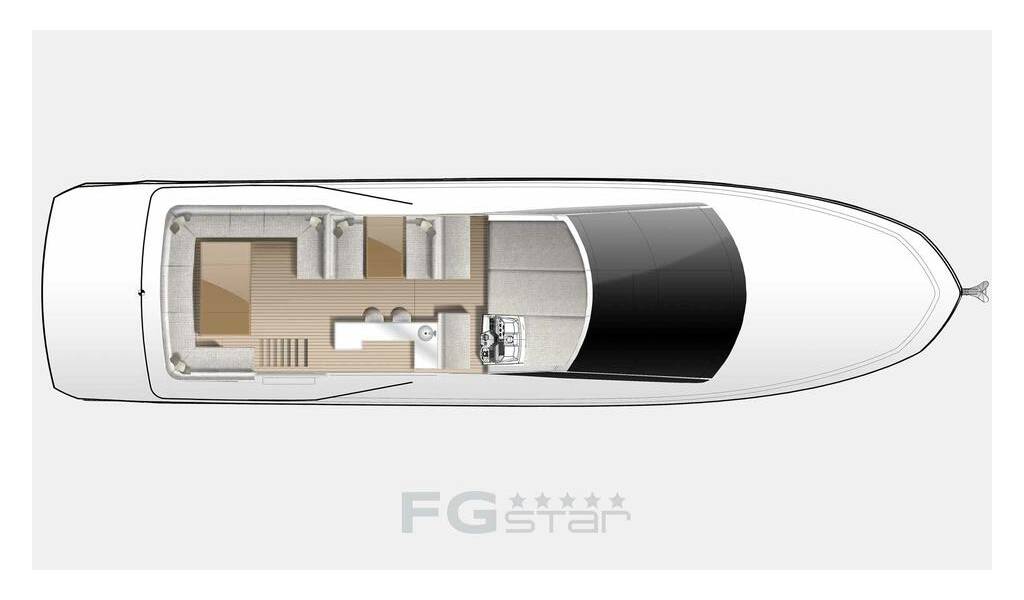 Motoryacht Galeon 640 FGstar, Baujahr 2022, liegt im Trogir, Yachtclub Seget (Marina Baotić), Split & Umgebung, Kroatien vor Anker. Es verfügt über 4 Kabinen und bietet Platz für 8 + 2 Personen mit 3 Toiletten.