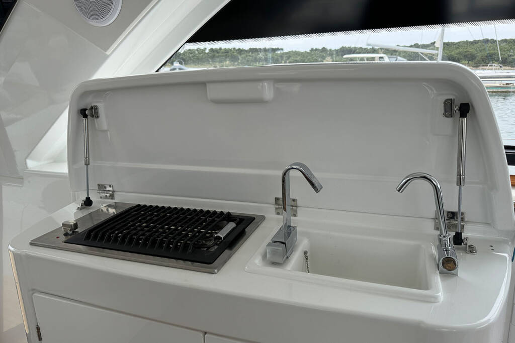 Motoryacht Gran Turismo 45 Holly Four, Baujahr 2024, liegt im Marina Mandalina, Sibenik, Sibenik & Umgebung, Kroatien vor Anker. Es verfügt über 3 Kabinen und bietet Platz für 6 Personen mit 2 Toiletten.