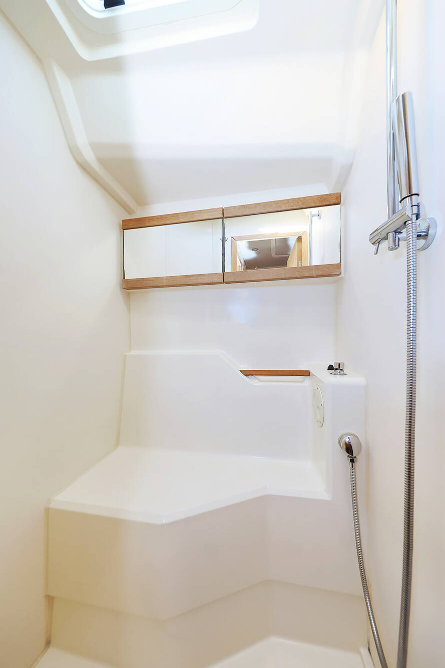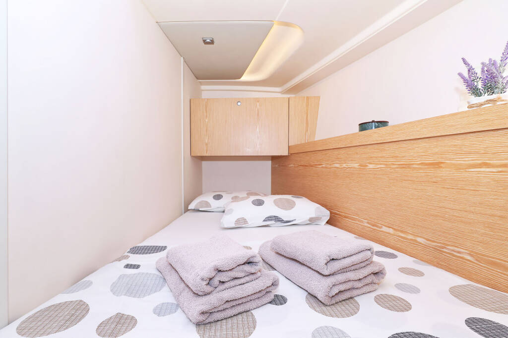 Segelyacht Hanse 455 Lorelei, Baujahr 2017, liegt im Marina Kastela, Split & Umgebung, Kroatien vor Anker. Es verfügt über 4 Kabinen und bietet Platz für 8 + 2 Personen mit 2 Toiletten.