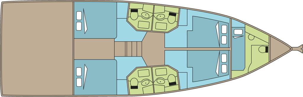 skipper and a hostess/cook are on board, 1 double cabin and 1 forepeak cabin will be