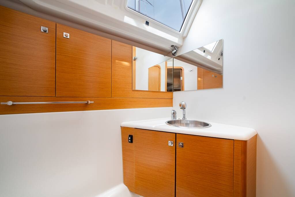 Segelyacht Jeanneau 53 Regina V, Baujahr 2010, liegt im Lavrion, main port, Athens area/Saronic/Peloponese, Griechenland vor Anker. Es verfügt über 5 + 1 Kabinen und bietet Platz für 10 + 2 + 1 Personen mit 3 + 1 Toiletten.