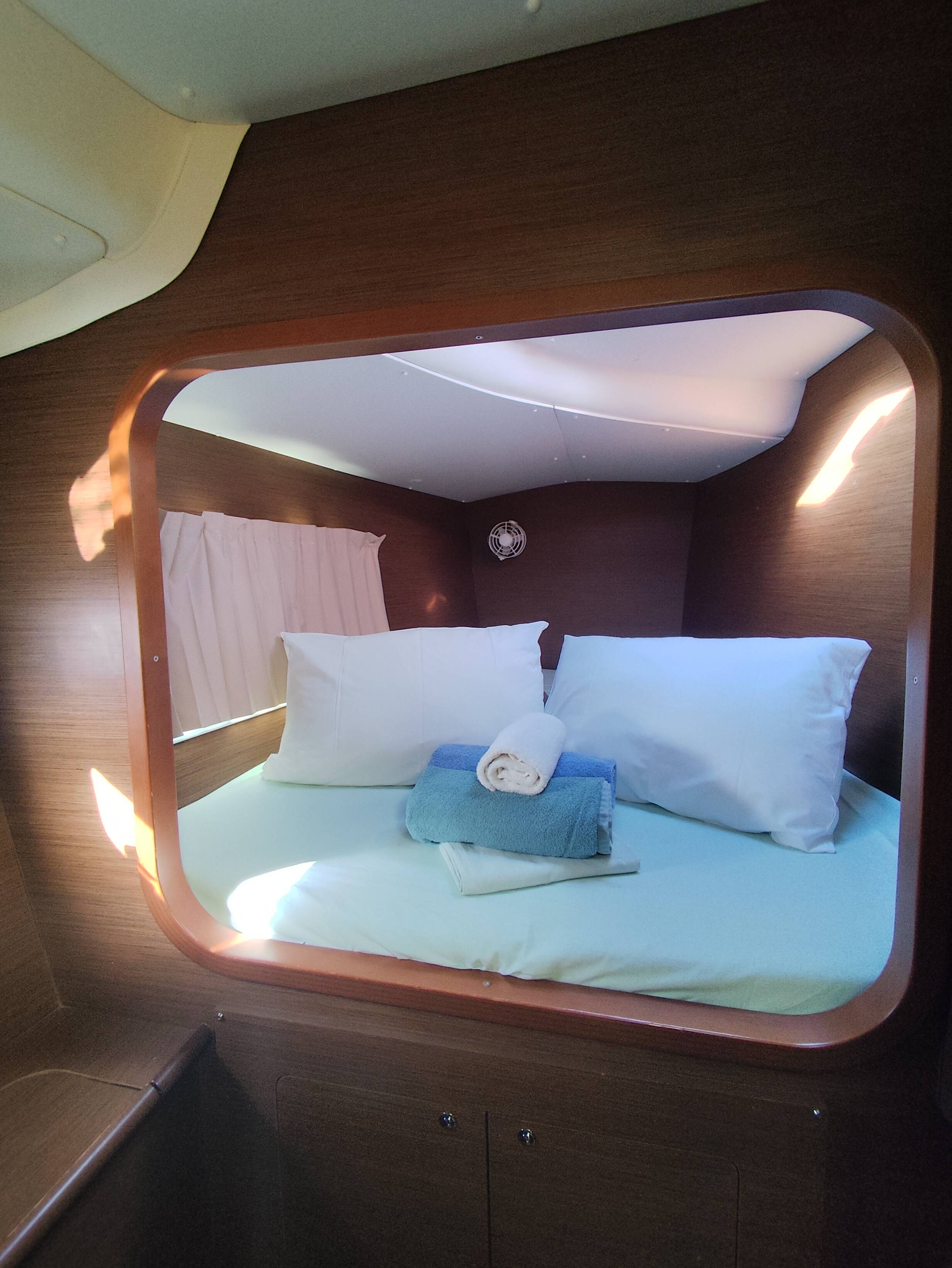 Katamaran Lagoon 380 Whooper, Baujahr 2019, liegt im Marina d'Empuriabrava, Katalunien, Spanien vor Anker. Es verfügt über 4 Kabinen und bietet Platz für 8 + 2 Personen mit 2 Toiletten.