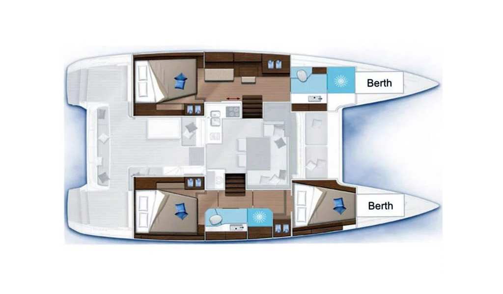 Katamaran Lagoon 40 Lubina, Baujahr 2021, liegt im Marina, Luka Marina (in der Nähe von Trogir), Split & Umgebung, Kroatien vor Anker. Es verfügt über 3 + 2 Kabinen und bietet Platz für 6 + 2 + 2 Personen mit 2 Toiletten.