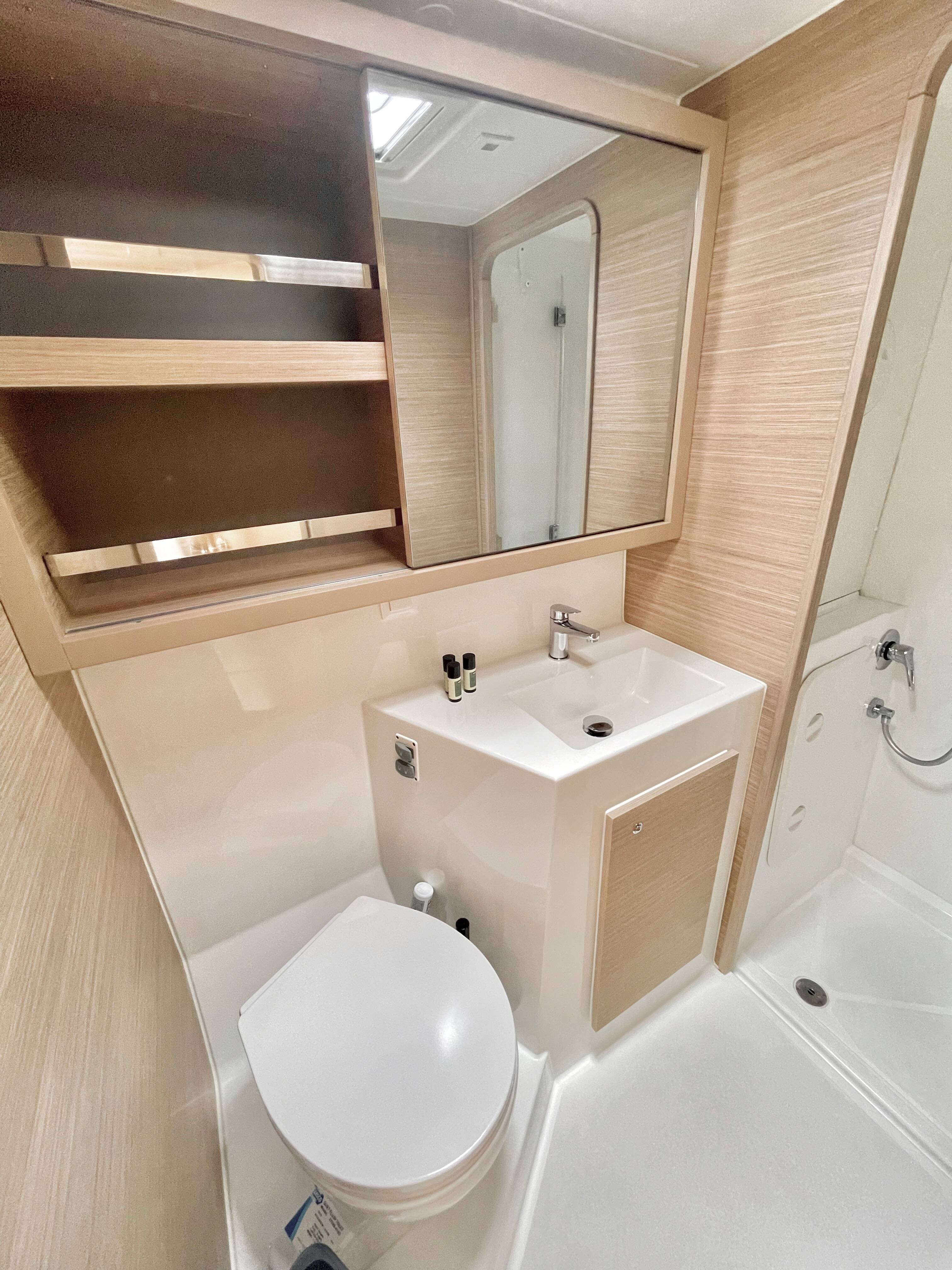 Klimaanlage, 2x elektrische Steuerbord-Manövrierwinde 46,2 STAEH, Achtercockpit-Kissen, Seiten um das Achtercockpit, Sunlounge-Bereichskissen mit anhebbarer Rückenlehne auf dem Dach, Teak-Cockpit