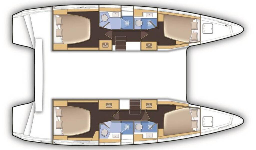 Katamaran Lagoon 42 Galapagos, Baujahr 2017, liegt im Rogač (Šolta), Split & Umgebung, Kroatien vor Anker. Es verfügt über 4 + 1 Kabinen und bietet Platz für 10 + 1 Personen mit 4 + 1 Toiletten.