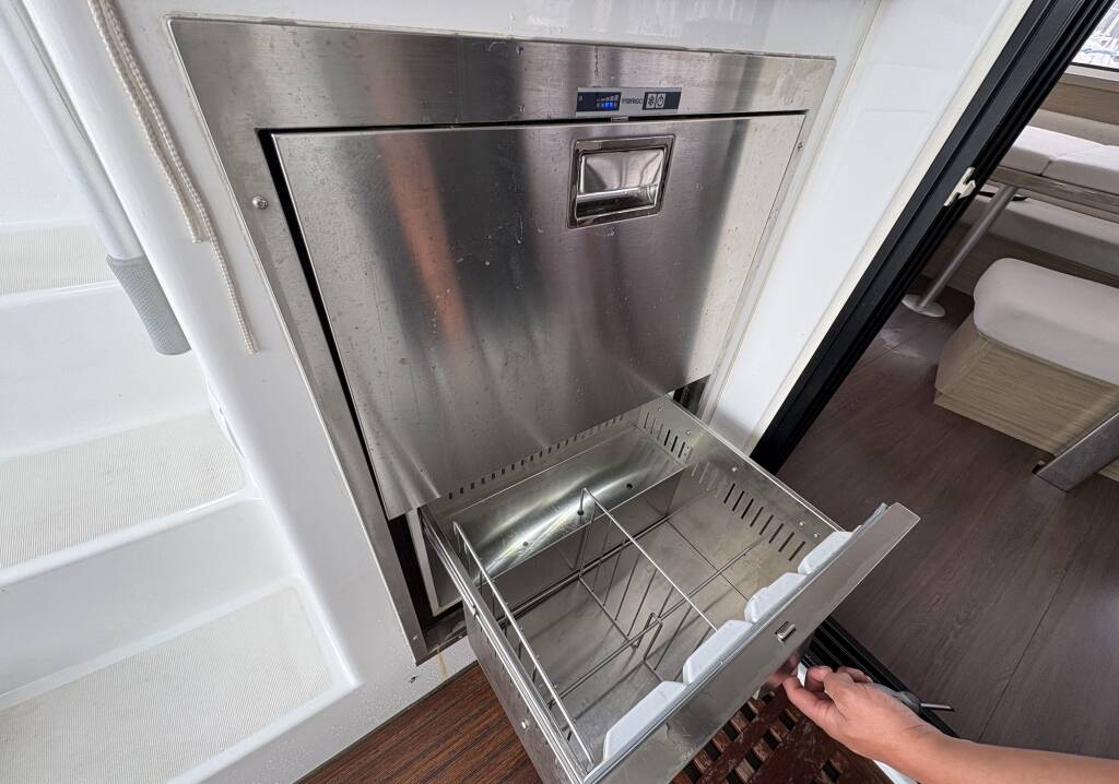 Katamaran Lagoon 42 Sail Proteus, Baujahr 2024, liegt im Fethiye, Ece Saray Marina Resort, Aegean, Türkei vor Anker. Es verfügt über 4 + 2 Kabinen und bietet Platz für 8 + 2 Personen mit 4 Toiletten.