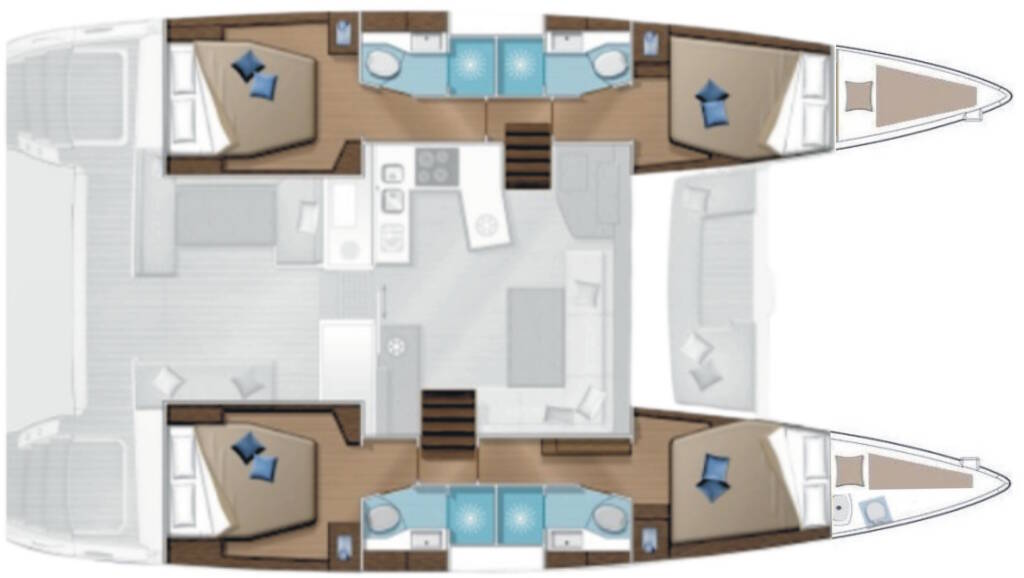 Katamaran Lagoon 450 F Alegria, Baujahr 2019, liegt im Athens, Alimos marina, Athens area/Saronic/Peloponese, Griechenland vor Anker. Es verfügt über 4 + 2 Kabinen und bietet Platz für 8 + 2 + 2 Personen mit 4 + 1 Toiletten.