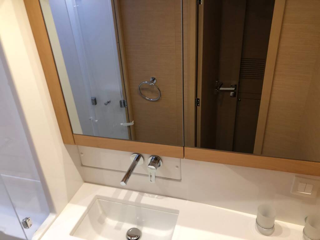 Katamaran Lagoon 450 F Aristofanis, Baujahr 2019, liegt im Lefkas main port, Ionisches Meer, Griechenland vor Anker. Es verfügt über 4 + 1 Kabinen und bietet Platz für 8 + 2 + 1 Personen mit 4 + 1 Toiletten.