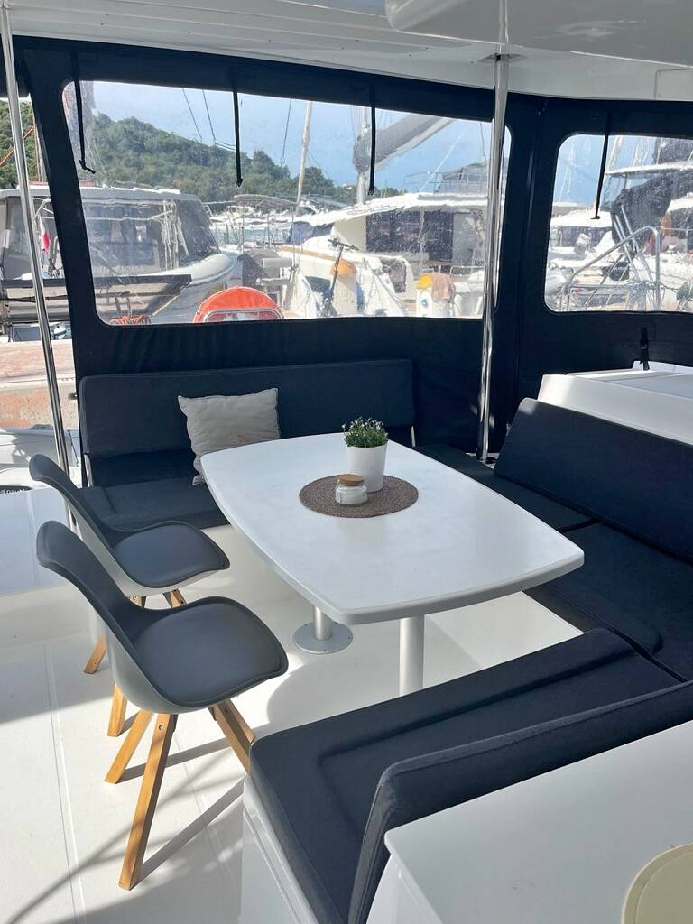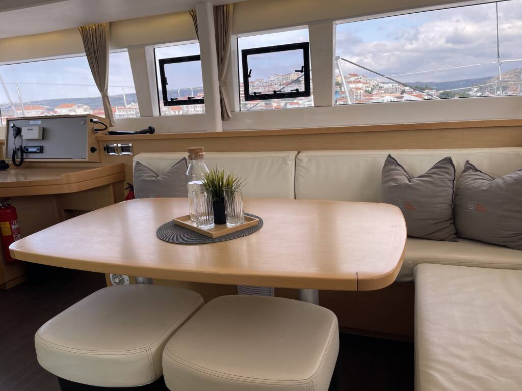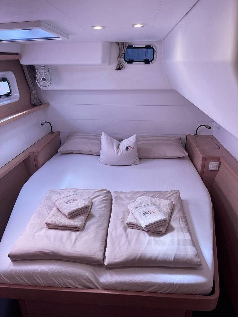 Lagoon 450F (4 Kabinen + 2 Skipper-Kabinen), das ist wohl der meist verkaufte Katamaran des bekannten Herstellers Lagoon. Verbringen Sie Ihren Urlaub auf dem Erfolgsmodell, an Bord der Julius Cesar III mit Flybridge. Mit 4 Kabinen und 4 Nasszellen mit el. WC, 2 Skipperkabinen und 2 Schlafmöglichkeiten im Salon bietet die Lagoon 450 F (Flybridge) Platz für große Crews, die gemeinsam die Adria erkunden möchten. 2 Kühlschränke und ein Gefrierschrank sorgen auch dafür, dass der Proviant frisch und die Getränkekalt bleiben. Die Julius Cesar III ist mit Solar ausgerüstet und produziert umweltfreundlich Strom für Ihre Annehmlichkeiten. Moderne Unterwasserbeleuchtung, Generator mit 7kW sowie Klima-Anlage in allen Kabinen und dem Salon, USB Ladebuchsen, Nespresso-Kaffeemaschine und ein 1200W Inverter vervollständigen die Ausstattung. Unsere Yachten sind mit C.I.G.O. Charter Information Guide Online ausgestattet. Unbegrenztes Internet, Beiboot und Außenborder sind im Charterpreis enthalten.