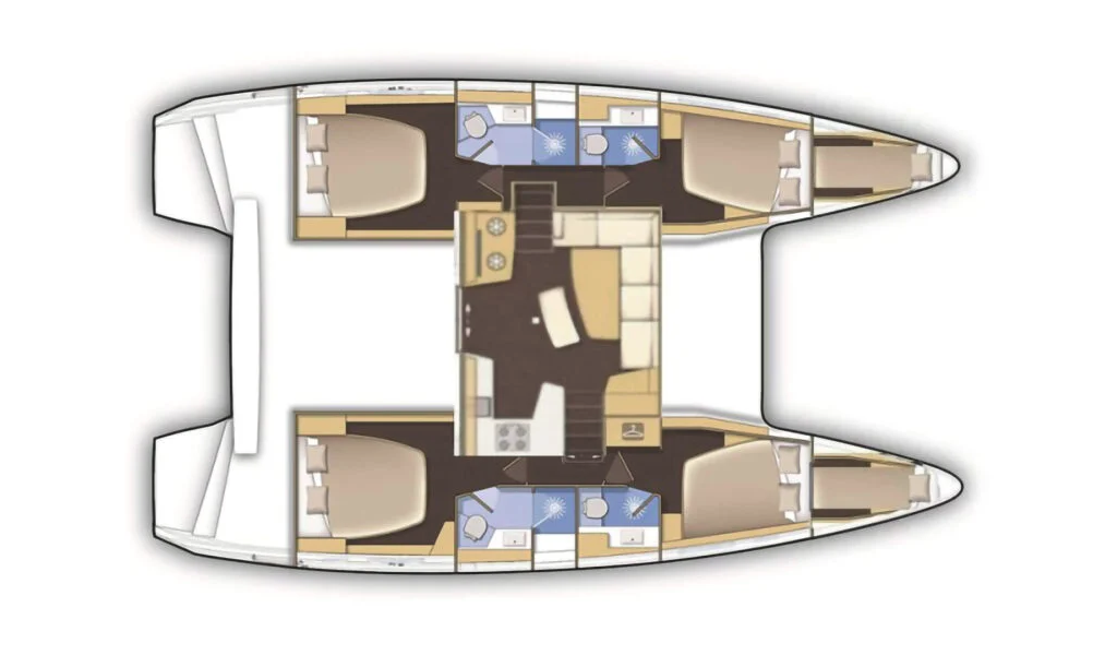 Katamaran Lagoon 46 Aurora, Baujahr 2024, liegt im Preveza, Cleopatra Marina, Ionisches Meer, Griechenland vor Anker. Es verfügt über 4 + 2 Kabinen und bietet Platz für 8 + 2 + 2 Personen mit 4 + 1 Toiletten.